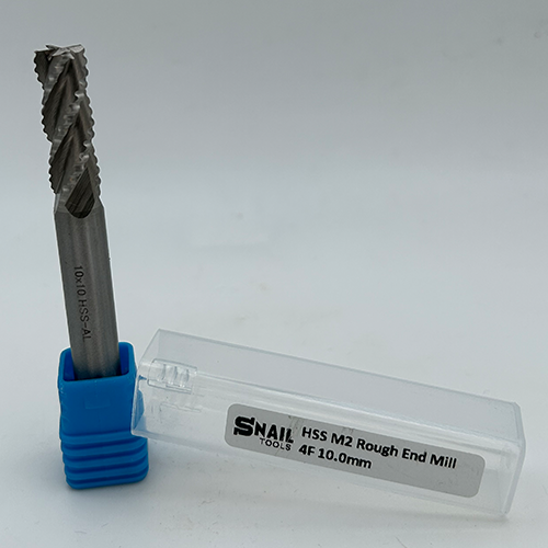 The Snail Tools HSS M2 Roughing End Mill is a specialized cutting tool designed for high-volume material removal during the initial roughing stage of machining. Its specialized roughing geometry (often featuring serrations or a wave-form edge) efficiently breaks chips into small, manageable pieces.1 This chip breaking capability allows for deeper cuts and higher feed rates while reducing cutting forces and minimizing chatter compared to standard end mills. The robust HSS M2 material provides an excellent balance of toughness and economy for hogging and heavy-duty applications in mild steel, carbon steel, and cast iron across Ontario and the GTA.