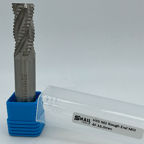 The Snail Tools HSS M2 Roughing End Mill is a specialized, heavy-duty cutting tool designed for high-volume material removal during the initial roughing stage of machining. Its specialized roughing geometry (often featuring serrations or a wave-form edge) efficiently breaks chips into small, manageable pieces. This chip breaking capability allows for deeper cuts and higher feed rates while reducing cutting forces and minimizing chatter compared to standard end mills. The robust HSS M2 material provides an excellent balance of toughness and economy for hogging and heavy-duty applications in mild steel, carbon steel, and cast iron across Ontario and the GTA.