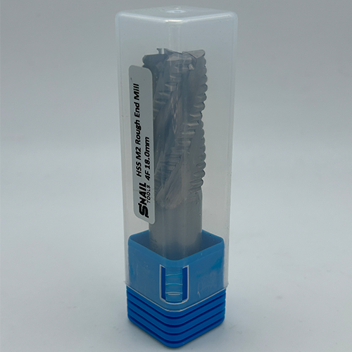 The Snail Tools HSS M2 Roughing End Mill is a specialized, heavy-duty cutting tool designed to maximize material removal by offering a large 18 mm cutting diameter while fitting into a common 16 mm tool holder (Reduced Shank design). Its specialized roughing geometry efficiently breaks chips into small pieces, allowing for deeper cuts and higher feed rates while reducing cutting forces and chatter. The robust HSS M2 material provides an excellent balance of toughness and economy for hogging and heavy-duty roughing applications in mild steel, carbon steel, and cast iron across Ontario and the GTA.