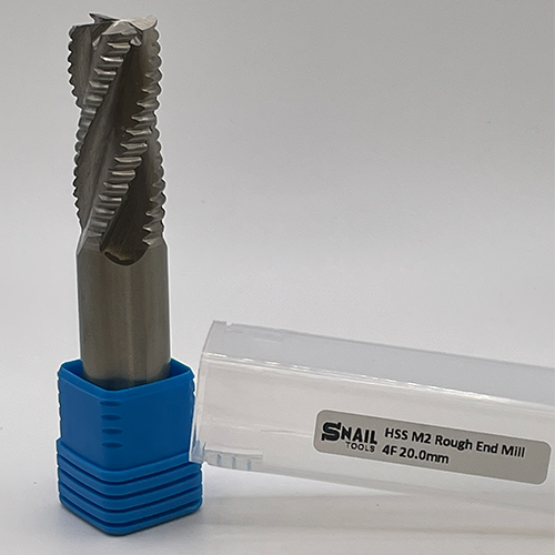 The Snail Tools HSS M2 Roughing End Mill is a large, heavy-duty cutting tool designed for maximum material removal during the initial roughing stage of machining. Its specialized roughing geometry (often featuring serrations or a wave-form edge) efficiently breaks chips into small, manageable pieces. This chip breaking capability allows for deepest cuts and highest feed rates while significantly reducing cutting forces and minimizing chatter compared to standard end mills. The robust HSS M2 material provides an excellent balance of toughness and economy for demanding hogging applications in mild steel, carbon steel, and cast iron across Ontario and the GTA.