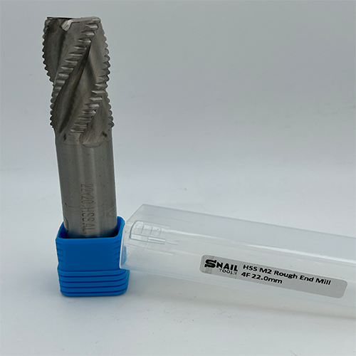 The Snail Tools HSS M2 Roughing End Mill is a specialized, extra-large cutting tool designed for extreme material removal by offering a massive 22 mm cutting diameter while fitting into a standard 20 mm tool holder (Reduced Shank design). Its specialized roughing geometry efficiently breaks chips into small pieces, allowing for deepest cuts and highest feed rates while significantly reducing cutting forces and chatter. The robust HSS M2 material provides an excellent balance of toughness and economy for hogging and heavy-duty roughing applications in mild steel, carbon steel, and cast iron across Ontario and the GTA.