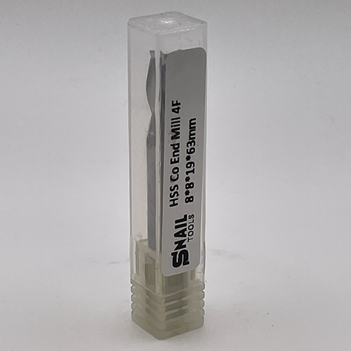 The Snail Tools HSS Co Four Flute End Mill (8 x 8 x 19 x 63MM) is a standard $8\text{mm}$ diameter, high-rigidity tool designed for precision finishing operations across a wide range of materials, including steel, stainless steel, cast iron, and general alloys. The four-flute design provides the maximum possible tool rigidity and engagement, resulting in the finest surface finish and highest stability during demanding finishing passes. This cutter features a cobalt infusion for superior heat resistance, making it ideal for accurate CNC finishing applications across Ontario and the GTA.