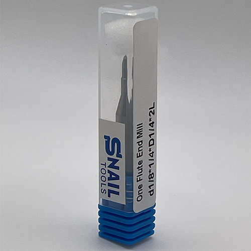 The Snail Tools Single Flute End Mill is a specialized precision tool engineered for maximum rigidity and superior chip evacuation when performing shallow, intricate cuts in soft, non-ferrous materials. The design features a robust 1/4 inch shank supporting a fine 1/8 inch cutting diameter, which drastically minimizes vibration and deflection. This stability is crucial for high-speed machining (HSM) of materials like aluminum, plastics (HDPE, Delrin), and thin composites. The single flute ensures optimal chip removal, preventing re-welding and heat buildup in high-speed CNC routing applications across Ontario and the GTA.