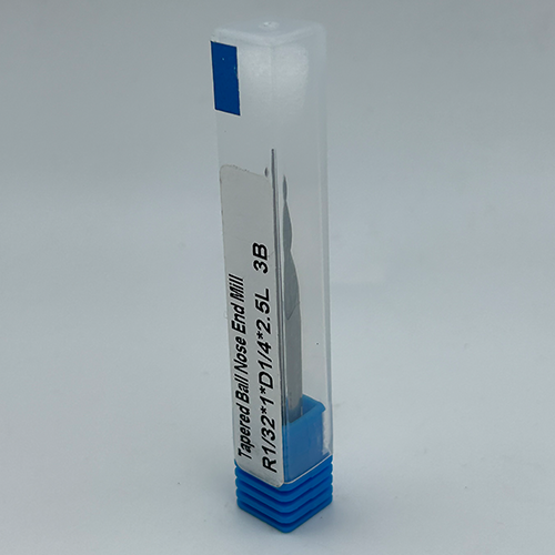 Geometry: Tapered Ball Nose (R1/32) – Ideal for detailed 3D finishing and creating complex contoured surfaces with ultra-fine resolution. The final tip diameter is 1/16 inch.