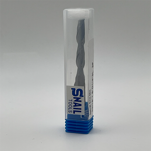 The Snail Tools Solid Carbide 2 Flute Spiral End Mill is a highly specialized, extra-long cut tool engineered for stability during deep, fine routing. The design features a robust, stabilized 1/4 inch shank supporting the finer 3/16 inch cutting diameter, which drastically minimizes vibration and deflection, ensuring precise, chatter-free cuts. The exceptional 1.5 inch length of cut allows for single-pass cutting through very thick panels and deep pocketing. The standard upcut spiral geometry efficiently pulls chips upward and out of the cut zone, ensuring rapid chip evacuation and cooling—ideal when routing deep features in materials such as wood, plastics, and aluminum. Constructed from Solid Carbide, this tool is essential for demanding CNC routing applications across Ontario and the GTA.